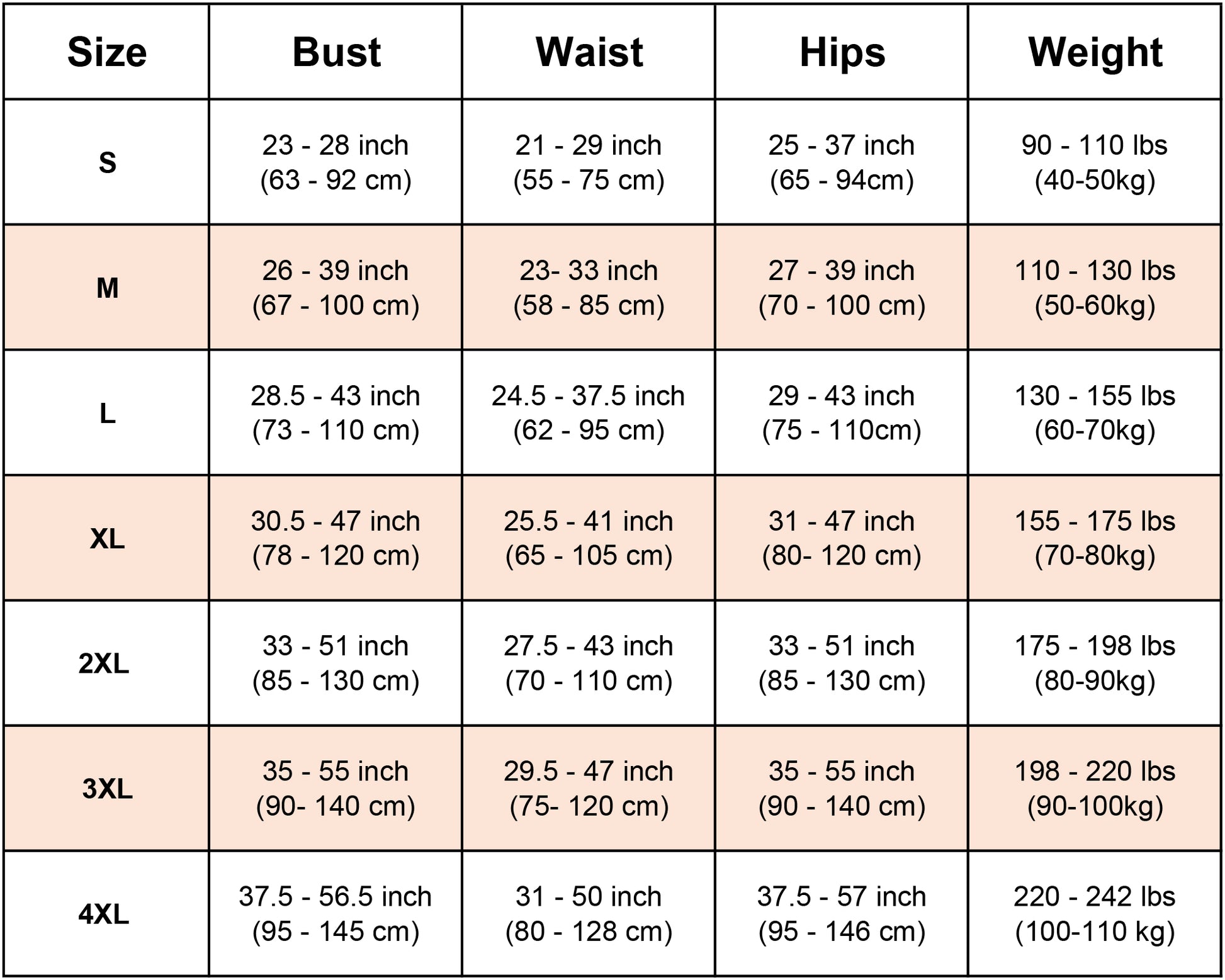 【Sizing Tips】Follow our size chart and measure your bust,waist, hip and weight. You may be surprised how "tiny" the bodysuit looks during 1st time try-on. But don't worry, the bodysuit is purposely designed with super stretchy fabric so that it will hug you in all right places!